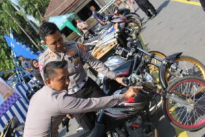 Dalam razia tersebut, petugas berhasil mendapati sekitar 36 motor yang tidak dilengkapi surat dan alat kelengkapan sesuai standar pabrikan. Mulai dari knalpot brong, ban kecil, spion dan tidak memakai helm.