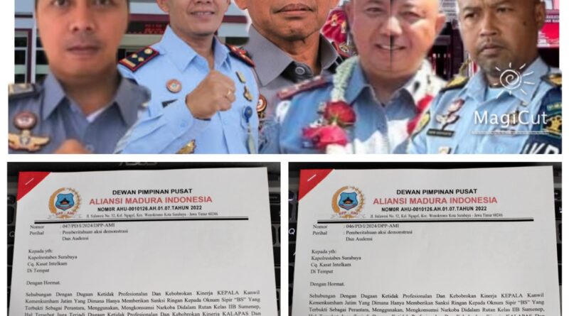 SURABAYA, – Lambannya penanganan Kantor Wilayah Kementerian Hukum dan Ham Jawa Timur untuk menangani persoalan kasus masuknya peredaran Narkoba, HP dan Pungli yang berada di Lapas Pemuda Klas II A Madiun dan Lapas Narkotika Klas IIA Pamekasan, membuat Aliansi Madura Indonesia (AMI) memprediksi adanya dugaan main mata.
