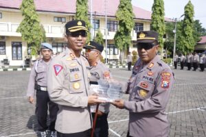 SITUBONDO, – Kapolres Situbondo AKBP Dwi Sumrahadi Rakhmanto, S.H., S.I.K., M.H. berikan penghargaan kepada Polsek Jajaran yang berprestasi dalam mengungkap kasus tindak pidana dan minuman keras di wilayahnya.