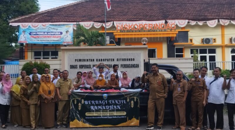 SITUBONDO, – Dalam semangat Ramadan, Diskoperindag (Dinas Koperasi dan Usaha Mikro, Kecil, dan Menengah) Situbondo menggelar acara pembagian 300 bungkus takjil gratis,kepada masyarakat yang melintas di jalan depan kantor.