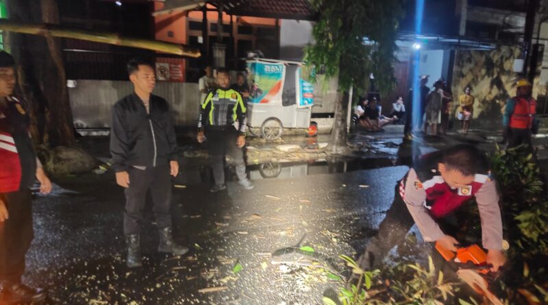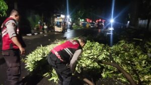 Gercep, Polisi Kota Kediri Evakuasi Pohon Tumbang di Jalur Mudik