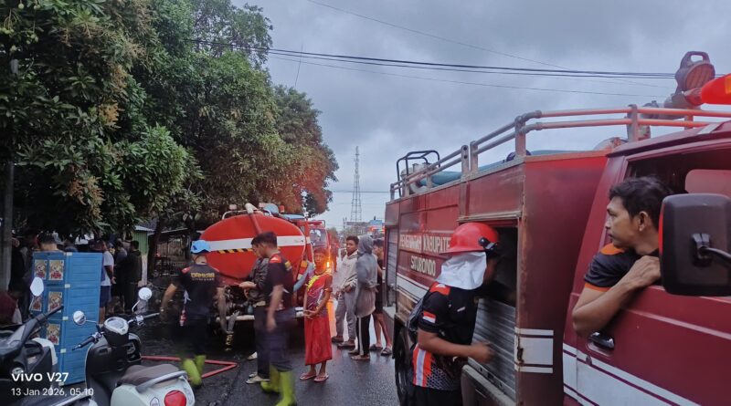 Situbondo – Pada hari Selasa, 13 Januari 2026, sekitar pukul 04.10 WIB, terjadi kebakaran yang mengakibatkan kerusakan parah pada dua rumah di Perumahan PG Asembagus, Kecamatan Asembagus, Kabupaten Situbondo. Kebakaran ini diduga disebabkan oleh korsleting listrik, dan kini penyebab pastinya masih dalam penyelidikan oleh pihak kepolisian setempat.