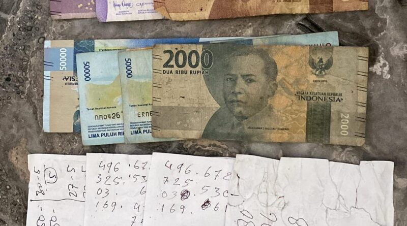 Dalam penangkapan tersebut, petugas menyita sejumlah barang bukti di antaranya satu unit ponsel jadul merk Nokia yang digunakan untuk transaksi, uang tunai sebesar Rp177.000, tiga lembar kertas berisi rekapan nomor togel, serta satu unit sepeda motor Honda Revo tanpa pelat nomor milik tersangka.