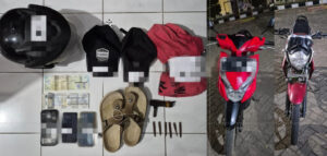 Dari lokasi penemuan motor, petugas tidak hanya mengamankan kendaraan milik korban. Polisi juga menyita sejumlah barang bukti yang ditinggalkan oleh pelaku saat kabur, di antaranya seperangkat kunci T yang digunakan untuk merusak kontak motor, sebuah jaket hitam, serta dua lembar sarung berwarna hitam.
