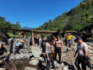 Aksi sosial kemanusiaan ini dipimpin langsung oleh Kapolres Situbondo AKBP Bayu Anuwar Sidiqie, S.H., S.I.K., M.Sc. Tanpa ragu, pucuk pimpinan Polres tersebut membaur bersama warga dan puluhan personel kepolisian untuk bahu-membahu mengerjakan material jembatan.